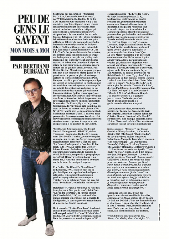 Bertrand Burgalat, Rock&Folk, novembre 2025.»