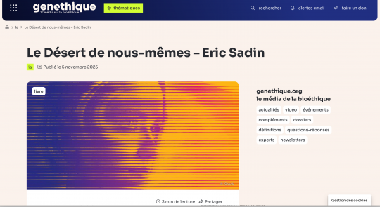 "Le Désert de nous-mêmes, un ouvrage indispensable" / Genethique / 05/11/25