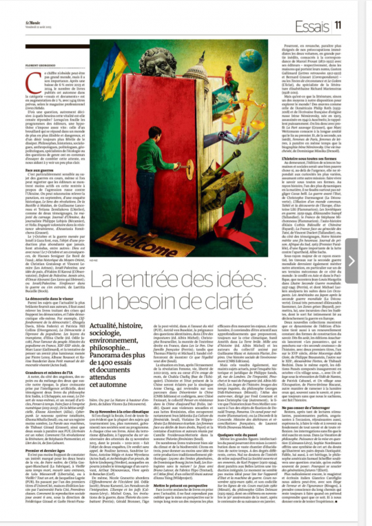 « La rentrée des idées : un besoin de clarté », Florent Georgesco, Le Monde des Livres, le 22 août 2025.